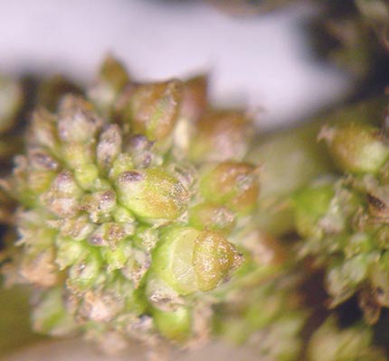 Die Blätter sind lang gestielt und vorne ausgerandet (Abb. 2), Blüten (Abb. 3), Blütenstand (Abb. 4) und Frucht (Abb. 5) verraten die Zugehörigkeit zu den Fuchsschwanzgewächsen. Insgesamt lande ich beim Bestimmen im Formenkreis des Aufsteigenden Fuchsschwanzes Amaranthus blitum L. 1753.